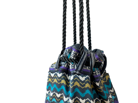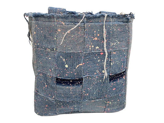 Upcycled Woven Denim Glow in the Dark Top Handle Tote