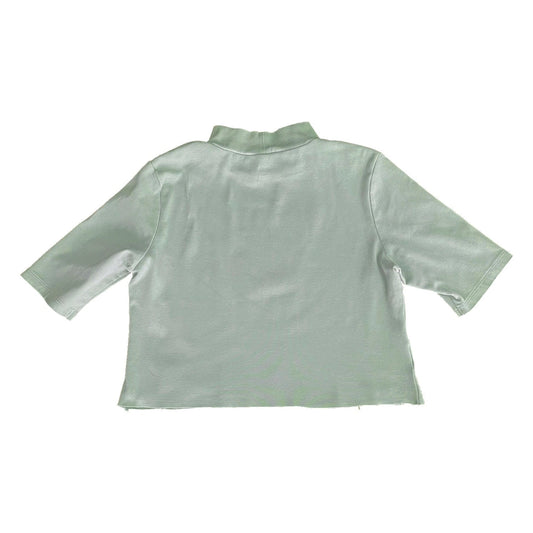 Upcycled Mint Green Distressed Half Sleeve Mock Neck Mid Drift With Star Patch